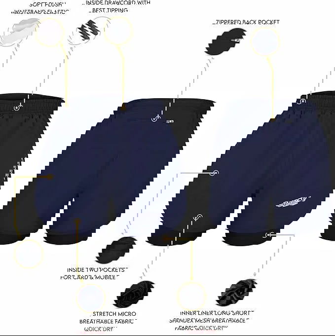 Men's 2 in 1 Athletic Shorts with Compression Liner (Navy)