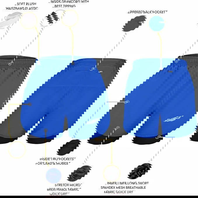 Men's 2 in 1 Athletic Shorts with Compression Liner (Royal Blue)