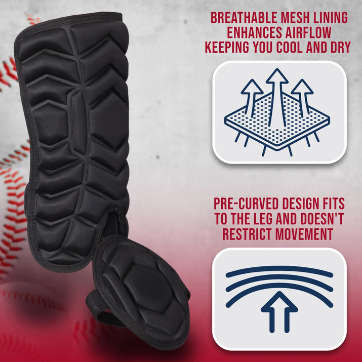 Advanced Impact Protection: Our baseball shin guard features impact shield technology with highly resilient EVA flex pads, provides a comfortable, lightweight feel and full coverage for optimal on-field shin, ankle, and top of foot protection.