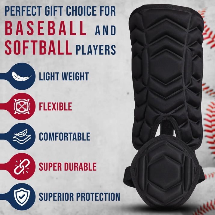 Quick and Secure Fit: Our shin guard baseball has adjustable double straps and a quick-release buckle clasp, allowing you to be game-ready in no time. Our ankle guard baseball has detachable extended foot cap with added flexibility and adjustable hook and loop strap; customize it to your liking for a perfect fit.