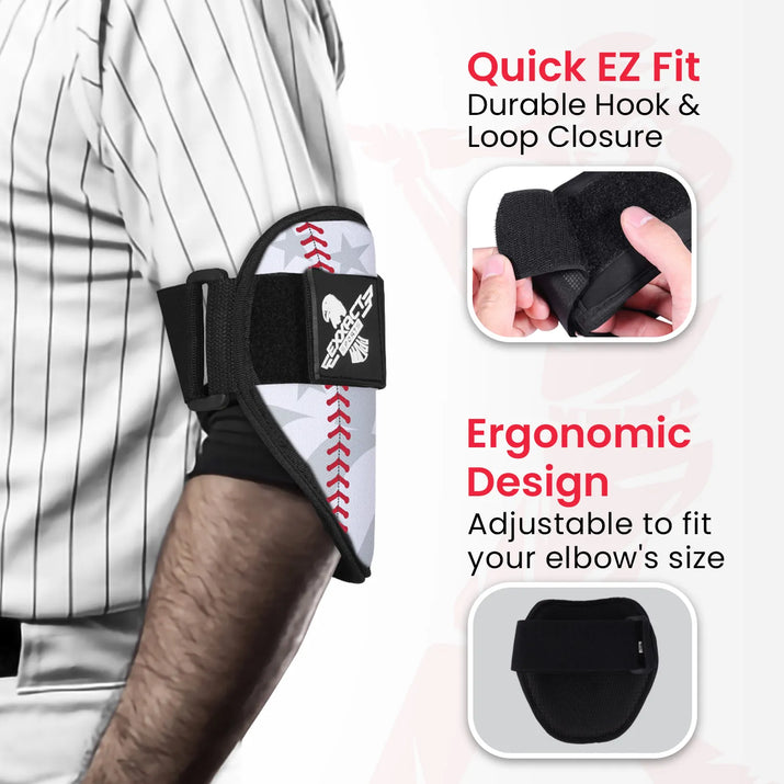 Baseball Elbow Guard with Adjustable Strap (White Baseball Flag)
