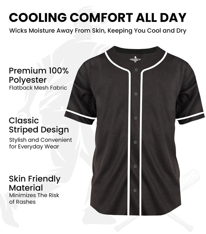 Timeless Style: Our classic full-button design with cool stripes in the middle body line and short sleeves offers a relaxed and loose fit and gives you that authentic baseball look that players love. Our jersey efficiently draws moisture away with advanced sweat-wicking and quick-dry properties, ensuring you stay cool and dry all day.