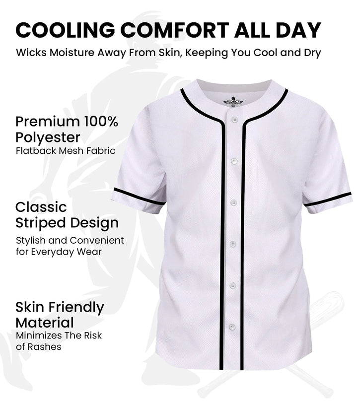 Baseball Jersey for Men and Women, Button Down Plain Jersey (White)