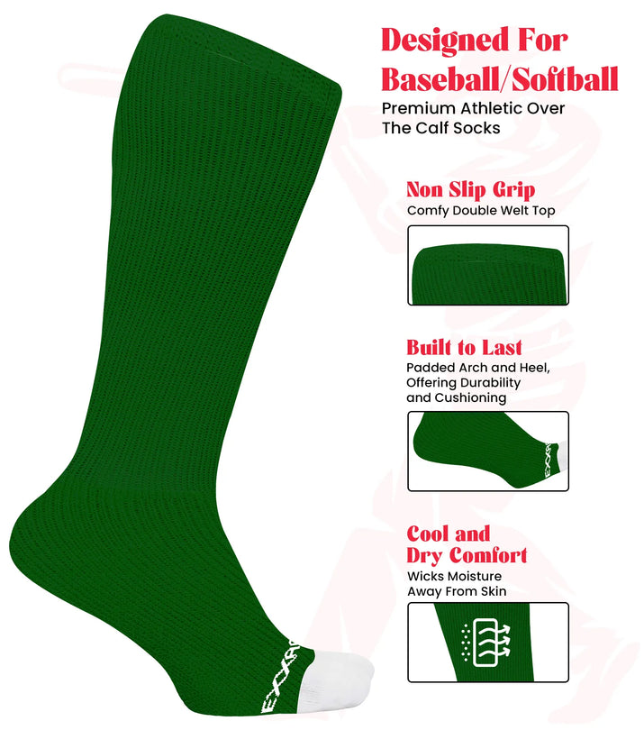 Baseball Socks and Belt Combo Set for Boys & Girls, Adult and Youth Sizes (Dark Green)