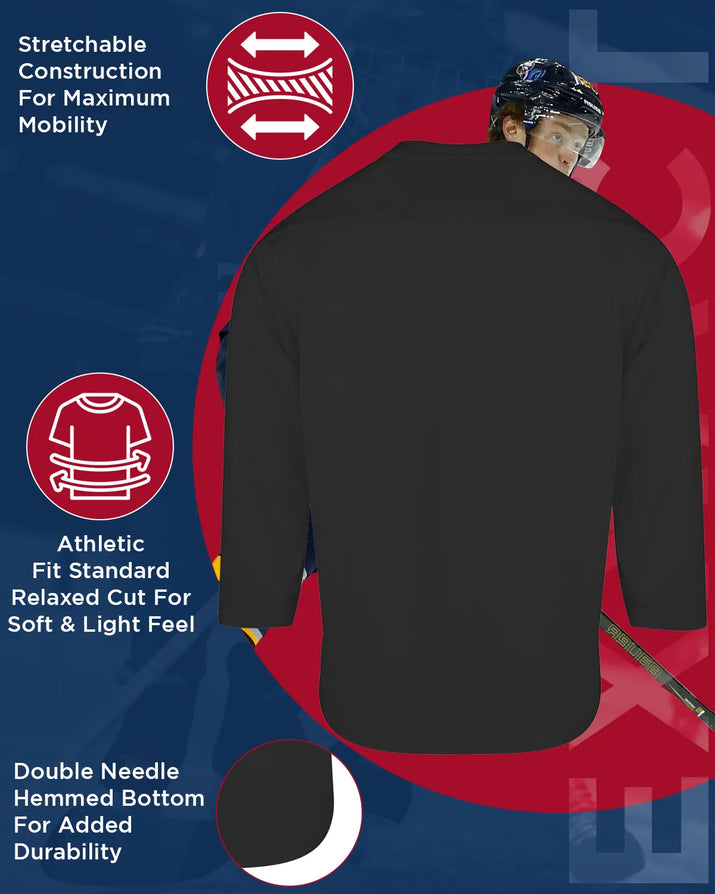 Unleash Your Full Potential With A Tailored Fit: Our practice-perfect 2-way stretch material elevates your performance. This hockey jersey's customized shape allows you unrestricted movement, allowing you to perform well in every position you play.