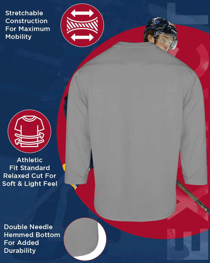 Unleash Your Full Potential With A Tailored Fit: Our practice-perfect 2-way stretch material elevates your performance. This hockey jersey's customized shape allows you unrestricted movement, allowing you to perform well in every position you play.