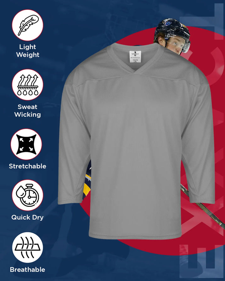 Prepare your young athlete for success on the ice with the Boys Silver Hockey Practice Jersey (Youth) from Exxact Sports. Specifically designed for youth players, this jersey combines style and functionality, making it an essential piece of equipment for any hockey practice.