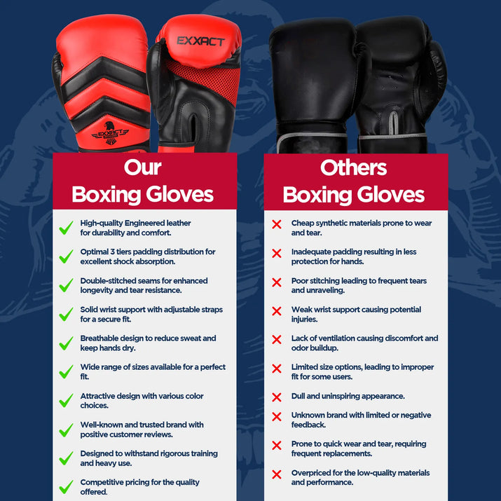 Powerful Performance, Unmatched Durability: Crafted with passion, Exxact Sports Boxing Gloves Men made of high-quality Maya Hide Engineered Leather for unmatched durability. Train like a true champion with punching gloves built to withstand your toughest challenges.