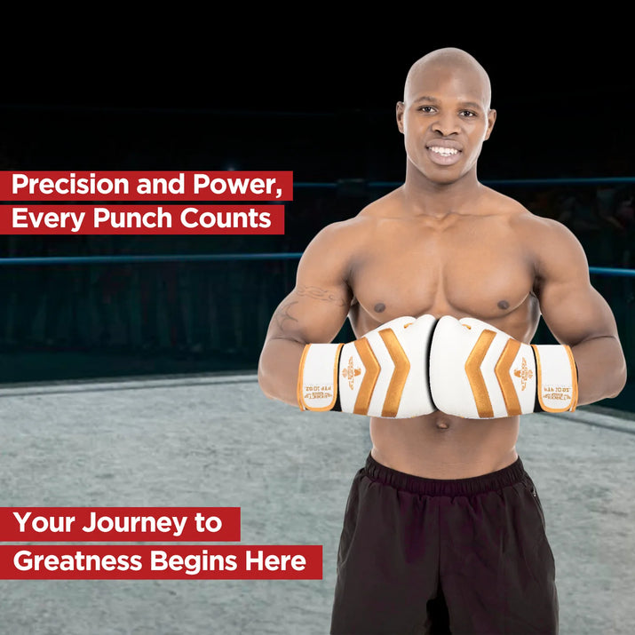Clash Boxing Gloves for Men & Women (White/Gold)
