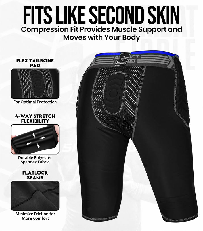 Superior Protection: Integrated 7-pad EVA foam system covers hips, thighs, knees, and tailbone for reliable impact protection.