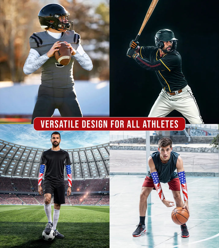 These arm compression sleeves Supporting your muscle with high quality material, working for reduce the effects of muscle vibration and overuse to improve your performance and help you recover more easily. Playing football, baseball, basketball or another sport with high intensity level these football compression sleeves will keep your muscles warm allowing you to play at full potential, whilst also recovering faster and reducing the risk of injury.
