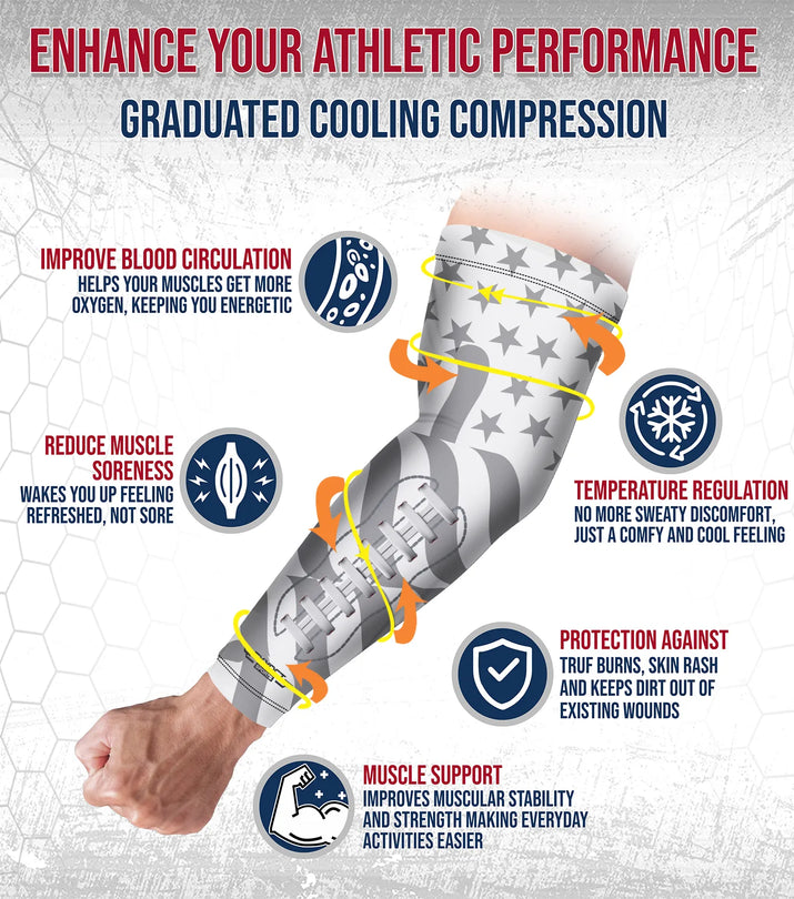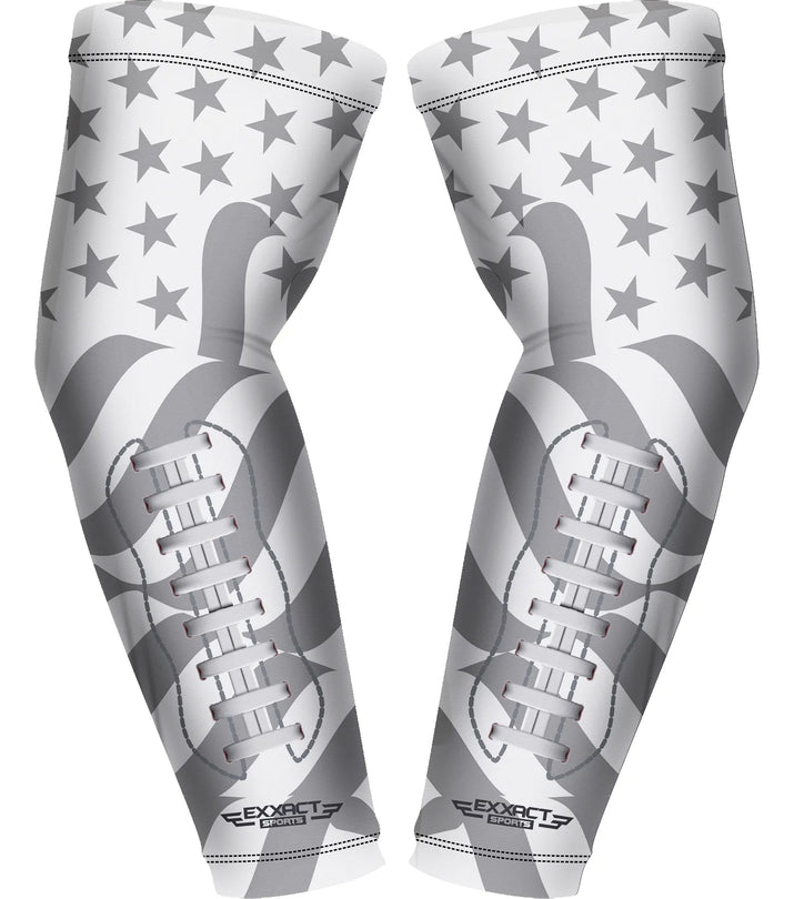 Compression Arm Sleeves for Mens & Womens Youth & Adult - (1 Pair) White Football Flag