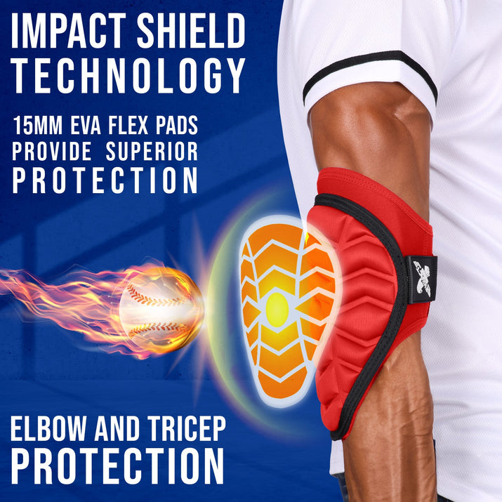 Advanced Impact Protection: Our youth elbow guard baseball Impact Shield combined with highly resilient EVA flex pads, provides a comfortable, lightweight feel and enhanced elbow and triceps protection against hard hits and impacts during game.