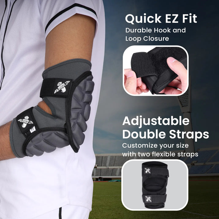 Stay protected and play confidently with the Defender Plus Baseball Elbow Guard with Adjustable Straps Dark Gray from Exxact Sports. This premium elbow guard provides maximum protection and comfort, making it an essential piece of gear for both youth and adult baseball players.