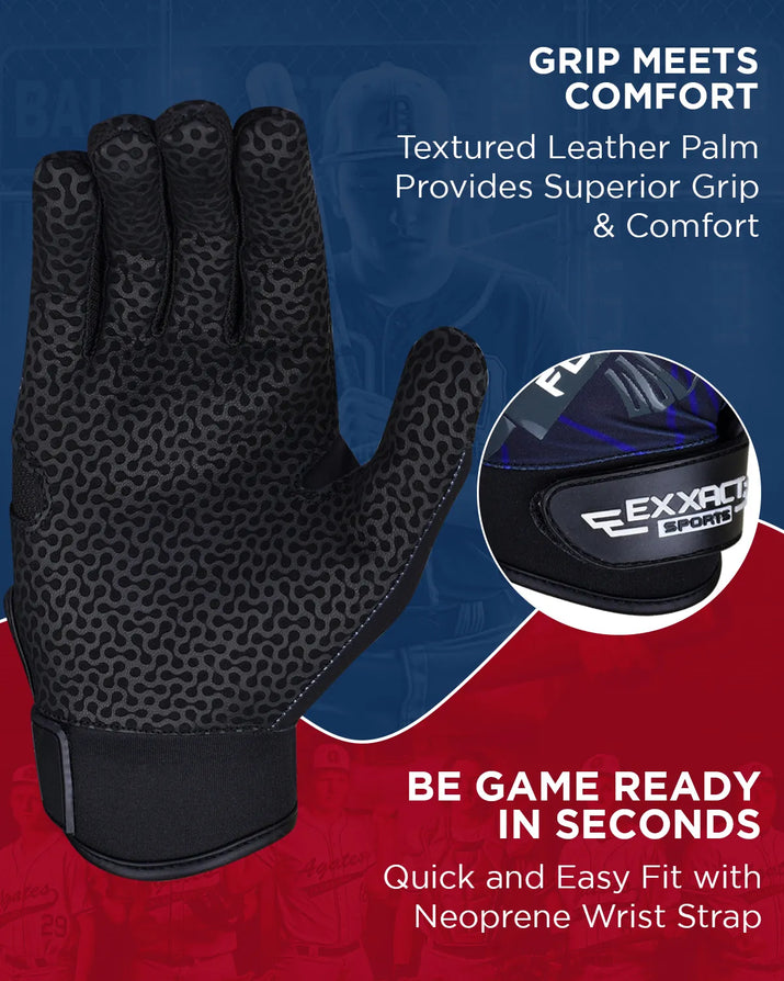 Quick and Easy Fit: We understand the demands of the game, and our gloves are built to withstand them. The Neoprene Wrist Strap ensures to put them on and take them off quickly. No more struggling with complicated straps or wasting time getting ready to play - you'll be ready to hit the field in no time.