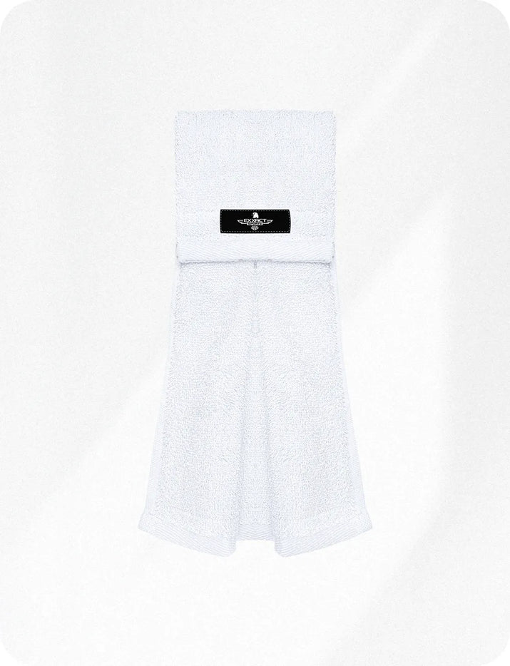 Football Towel with Hook & Loop Fastener, to Clean Hands, Visor and Gloves (White)