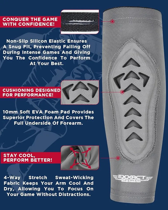 Forearm Padded Compression Sleeve For Football, Baseball (1 Pair) Gray