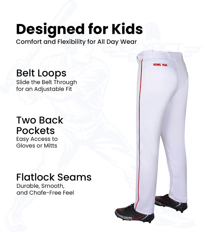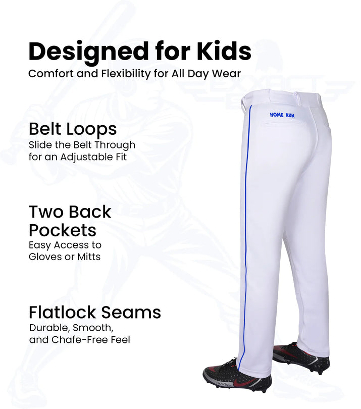 Homerun Boys Full Length Baseball Pants With Piping (White)