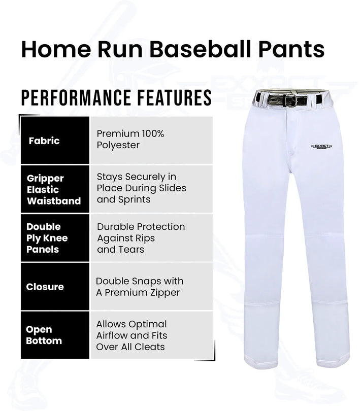✔ Performance Features Of Pants: Featuring a convenient zipper and two snaps in the front, and belt loops for a perfect fit, these pants are designed with your comfort and convenience in mind with open bottoms, they'll fit over any type of cleat. Plus, with two back pockets for batting gloves, you'll never have to worry about where to put your gear.