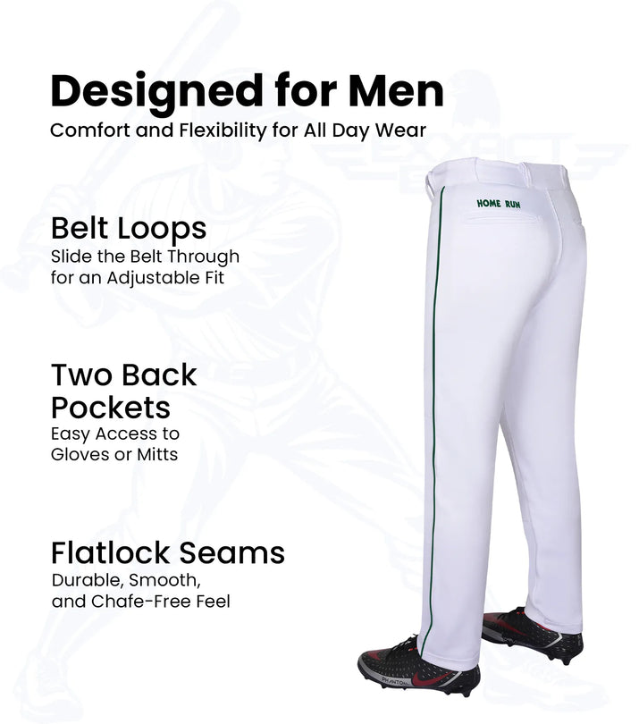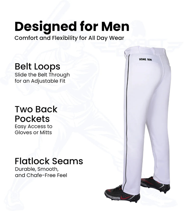 Homerun Men's Full Length Baseball Pants With Piping (White)