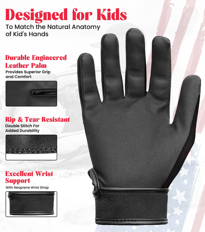 Built to Perform: Our youth baseball batting gloves are made with incredibly soft and breathable high-quality materials, with a synthetic leather soft palm and breathable materials on the back to ensure a perfect fit every time. Designed to fit like a second skin, our gloves provide unbeatable comfort for youth boys, and women softball players alike.
