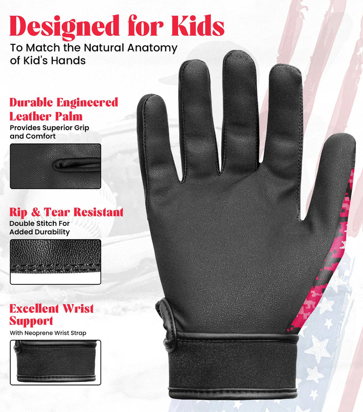 Kids Baseball Batting Gloves with Arm Sleeve (Pink Camo)