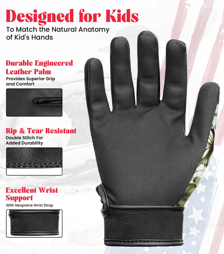 Gear up for the game with our Kids Baseball Batting Gloves with Arm Sleeve USA Flag from Exxact Sports! Designed for young athletes who want to stand out on the field, these batting gloves feature a striking USA flag design that showcases pride and passion for the game.