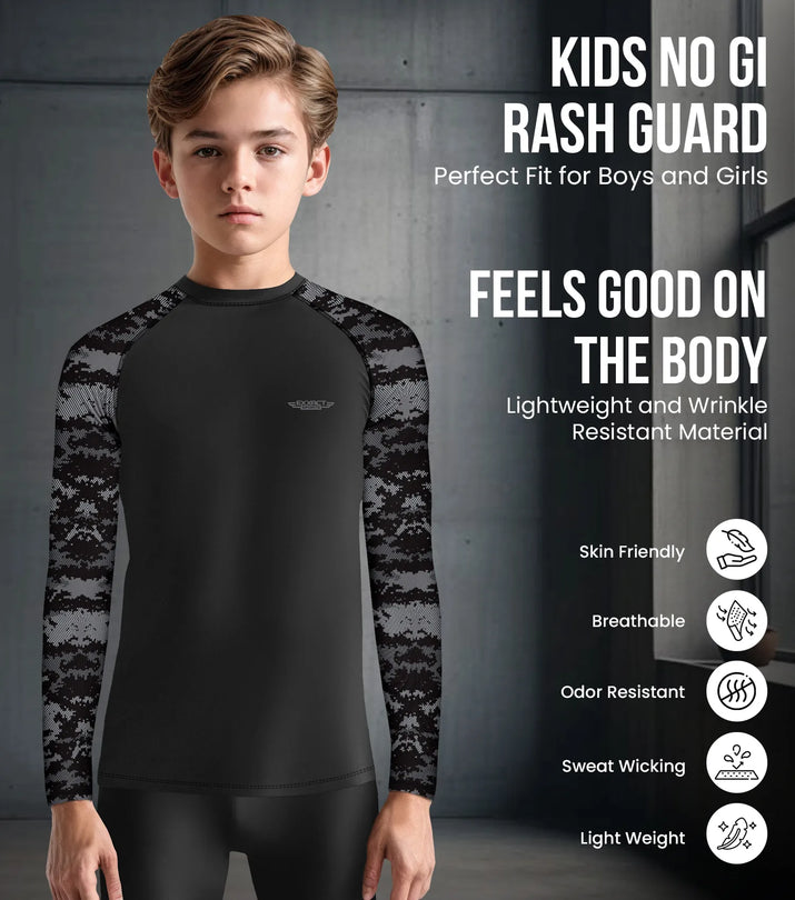 Kids Black Camo BJJ Rash Guard Long Sleeve