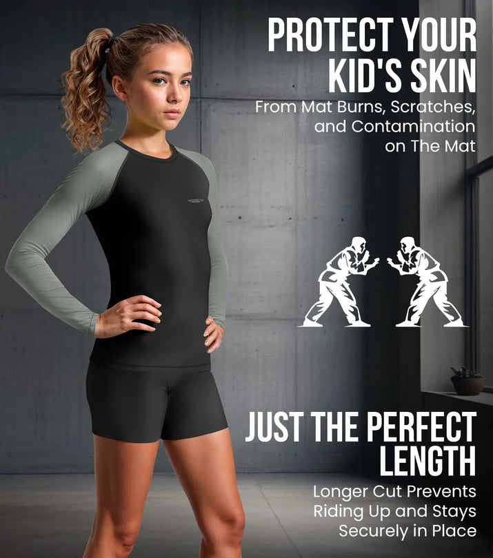 Kids Gray BJJ Rash Guar...