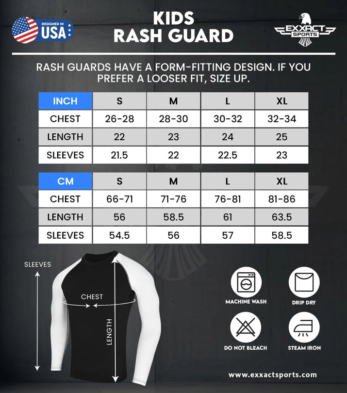 This Boys Rash Guard Long Sleeve youth athlete is designed by Exxact Sports for their comfort, protection and streamlined effort. From Brazilian Jiu-Jitsu (BJJ) to any other martial arts it's the must-have outfit of your long-term potential martial arts enthusiasts. Built for hard-core training sessions in mind, and made from premium materials, the BJJ BARRIER BREAKER is a rashguard. Designed especially for children's wear It's a simple but blisteringly tough exercise shirt engineered for kids on the go.