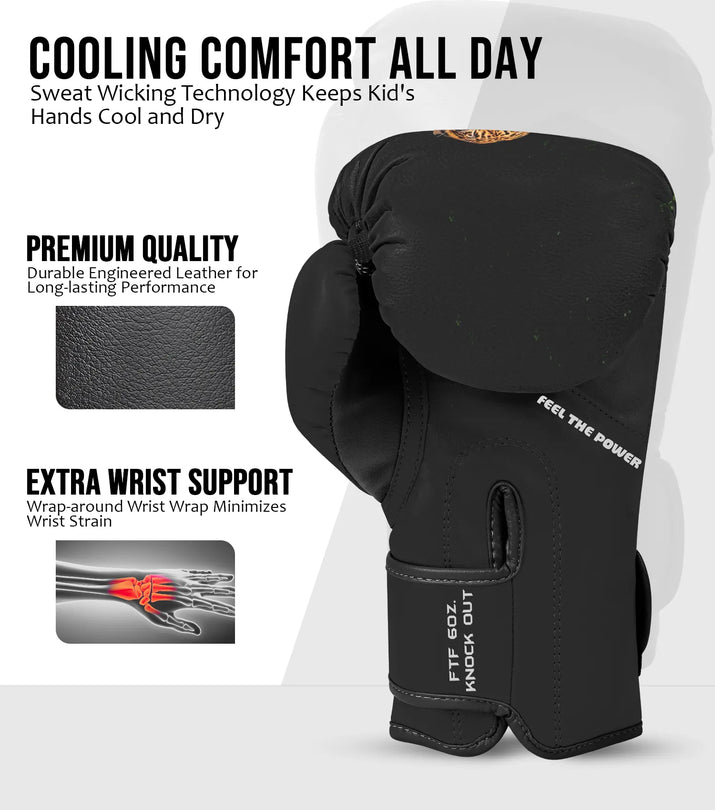 Kids Printed Knockout Boxing Gloves with Padded Protection (Leopard)