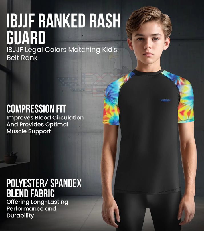 Kids Tie Dye BJJ Rash Guard Short Sleeve
