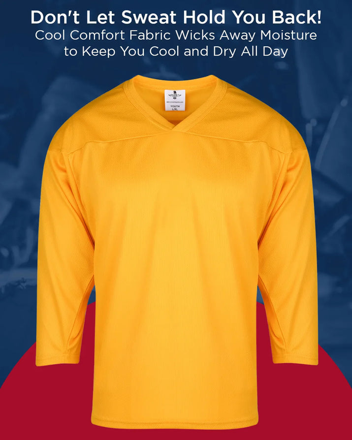 Unleash your young athlete's potential with the Boys Gold Hockey Practice Jersey (Youth) from Exxact Sports. Tailored for youth players, this jersey combines a striking design with essential performance features, making it an indispensable part of their hockey gear.