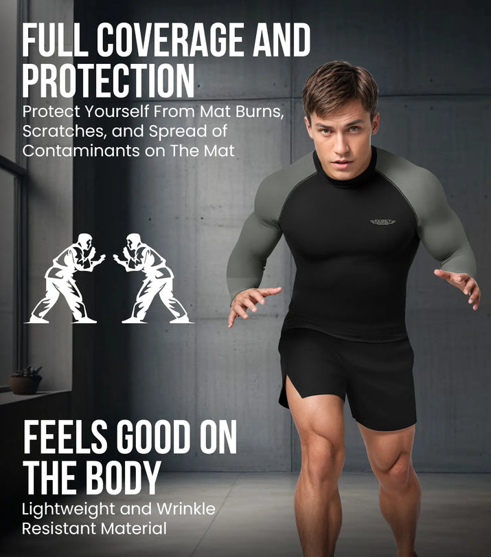 Confidence in Comfort: Train with unwavering confidence with our bjj rashguard for men sweat wicking technology coupled with ventilated mesh underarms to keep you cool, dry, and comfortable, allowing your skills to shine through in every move and technique.