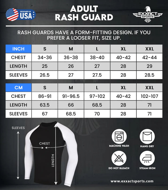 Master the Mat with Precision: Unleash your inner champion with Exxact Sports ranked rash guard bjj. Made of ultralight and durable poly-spandex odor resistant fabric, with high-quality vibrant sublimated graphics that won't fade, peel off, or irritate your skin over time. These rashguards bjj are IBJJF legal, so you can wear them to training or tournaments.