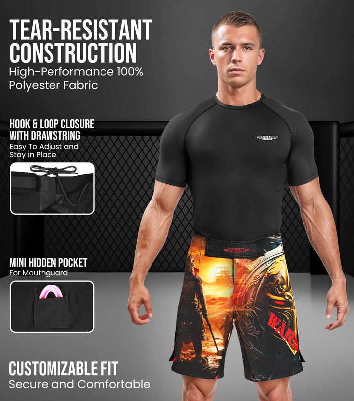 Men's Pro MMA Shorts, No-Gi BJJ Jiu Jitsu Shorts for Boxing, UFC & Cross Training (Warrior)