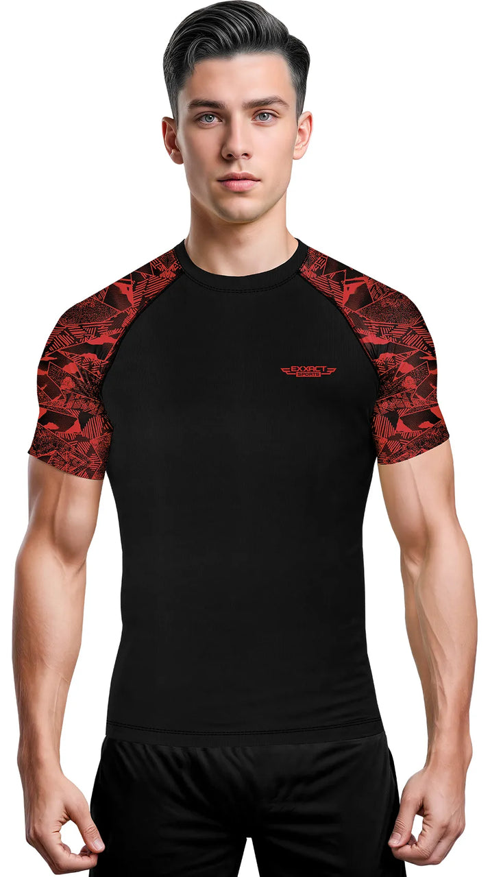 Men's Red Texture BJJ Rash Guard Short Sleeve
