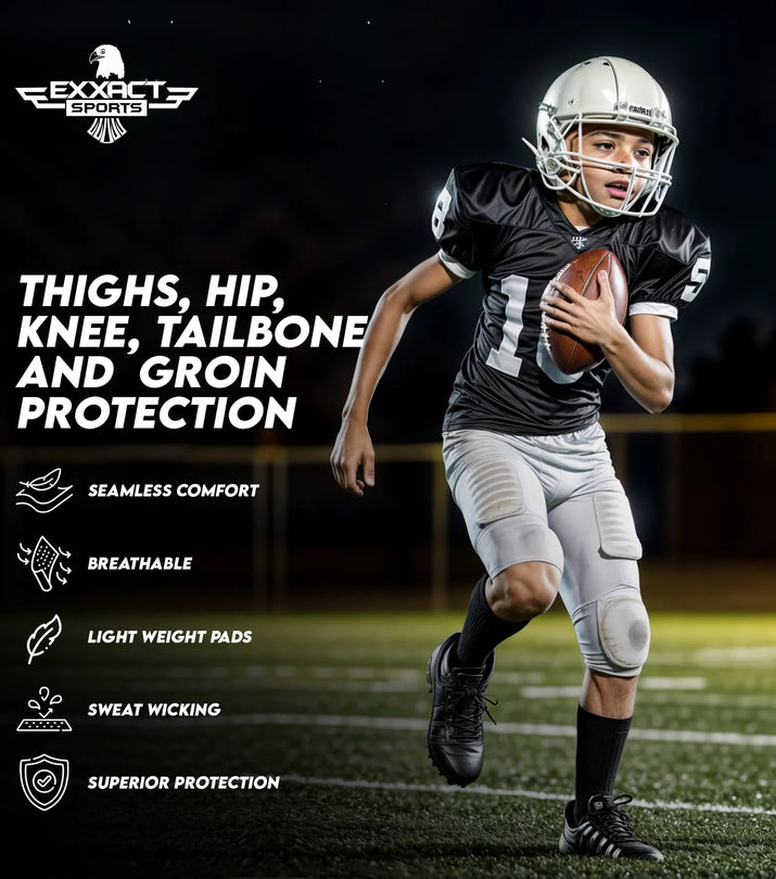 Equipped with seven integrated EVA foam pads, it offers full coverage for the hips, thighs, knees, and tailbone, minimizing impact during tackles and rough plays. The built-in cup pocket adds essential protection where it matters most, ensuring safety without sacrificing flexibility.