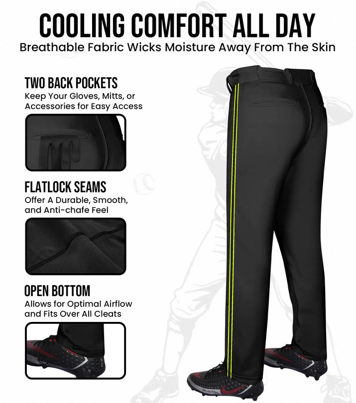 Perfect Fit for Every Player: With sizes from YXS to A6XL, we’ve got every player covered. Available in multiple colors and stripe combinations, these pants are the perfect addition to your team’s uniform, giving you both performance and style.