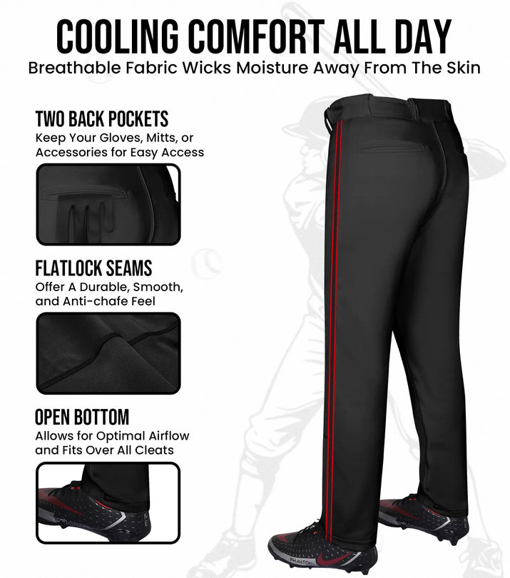 Built for Performance: Our mens baseball pants are designed with 100% polyester material to ensure long-lasting performance, whether for practice or game day. Reinforced in all the right areas, these youth baseball pants are built to withstand intense action, offering superior protection and longevity no matter how hard you play.