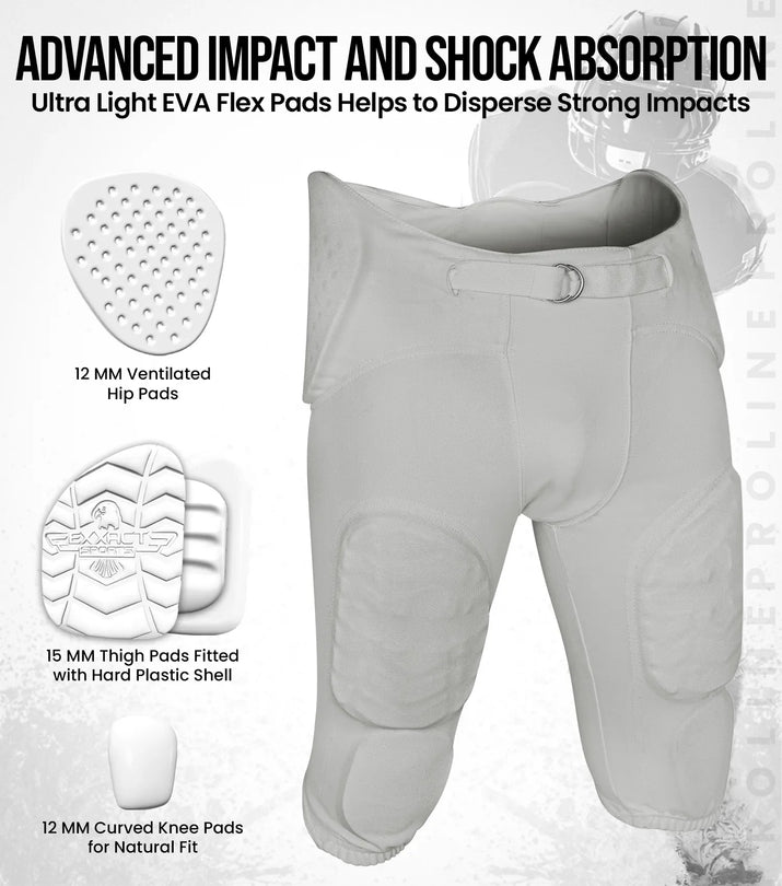 Proline Boys Integrated Football Pants with 7 Flex Pads Silver (Youth)