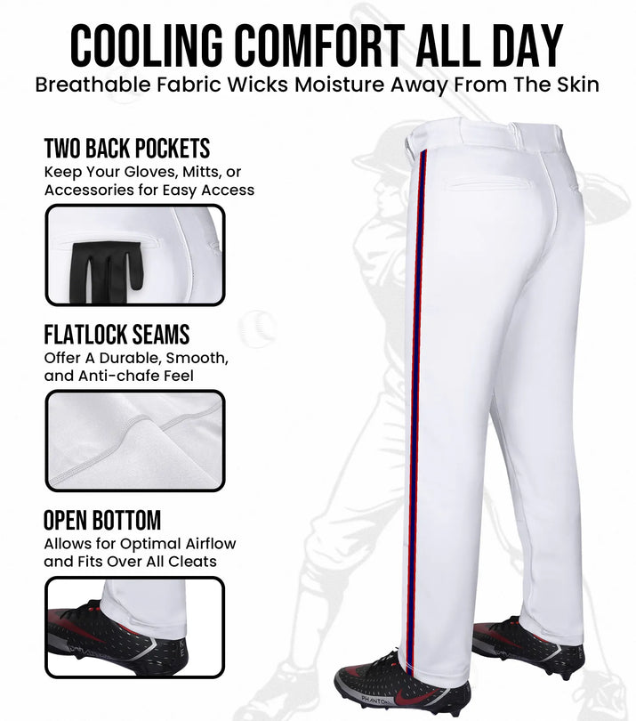 Perfect Fit for Every Player: With sizes from YXS to A6XL, we’ve got every player covered. Available in multiple colors and stripe combinations, these pants are the perfect addition to your team’s uniform, giving you both performance and style.