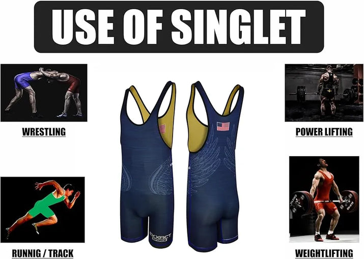Reversible Wrestling Singlet For Gymnastic & Mma Navy/Gold (Unisex Adult/youth)