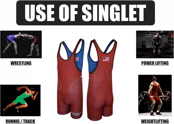 Reversible Wrestling Singlet For Gymnastic & Mma Red/Royal Blue (Unisex Adult/youth)