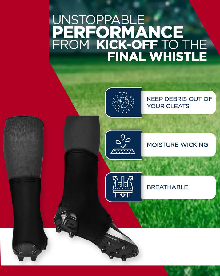 Protect Your Cleats and Your Game: Our spats for men football are made of 210 GSM spandex fabric and designed to be worn on the field to provide long-lasting protection and performance enhancement for your cleats, allowing you to play with confidence.