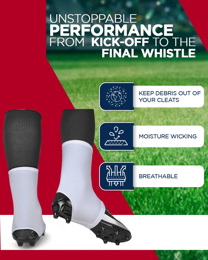 Protect Your Cleats and Your Game: Our spats for men football are made of 210 GSM spandex fabric and designed to be worn on the field to provide long-lasting protection and performance enhancement for your cleats, allowing you to play with confidence.
