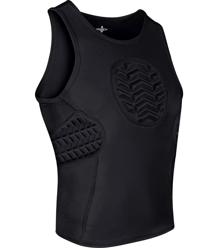 The tank styling delivers freedom of motion without restraint. Padded with cushioning where impacts land most, this vest absorbs checks to allow continuous concentration on the action. Either alone or under a jersey, its versatility suits how players gear up for each practice or contest.