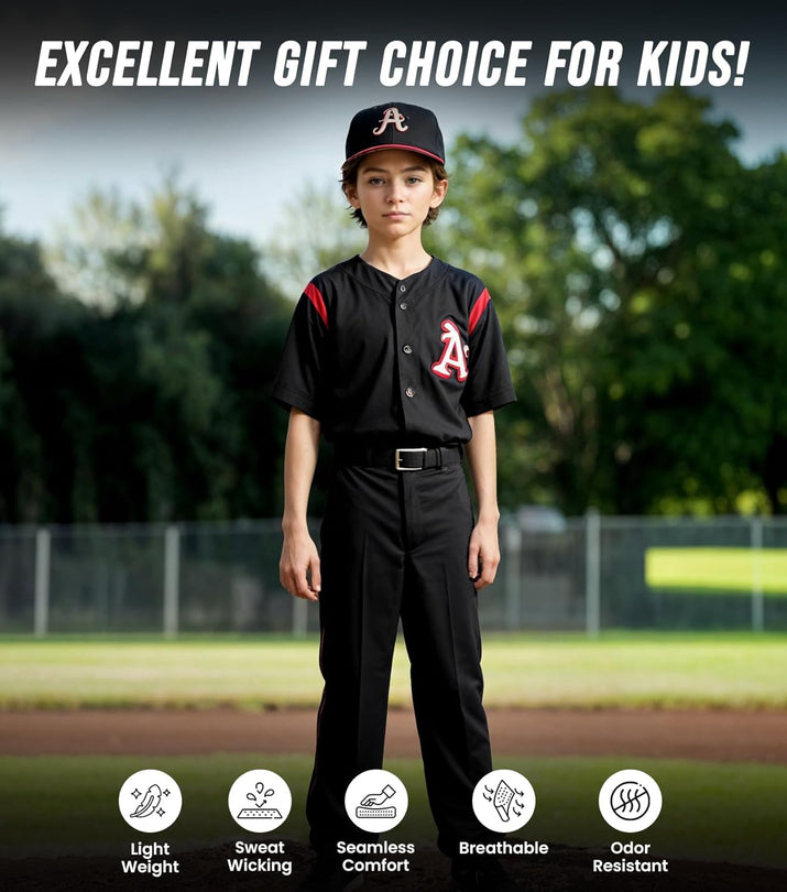 Elevate your young athlete’s game with these performance-oriented baseball pants, crafted from durable, breathable fabric for optimal comfort and freedom of movement on the field.