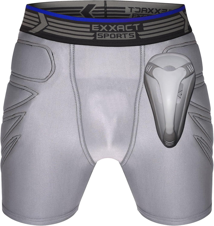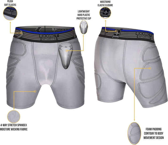 Answer 2: These shorts feature a high-quality foam padding system that absorbs impacts during gameplay, minimizing the risk of injuries from falls or collisions. Additionally, they include a specialized hard cup with a vented body and gel perimeter, providing targeted protection around sensitive areas without hindering mobility, ensuring safety while remaining flexible for active movements.